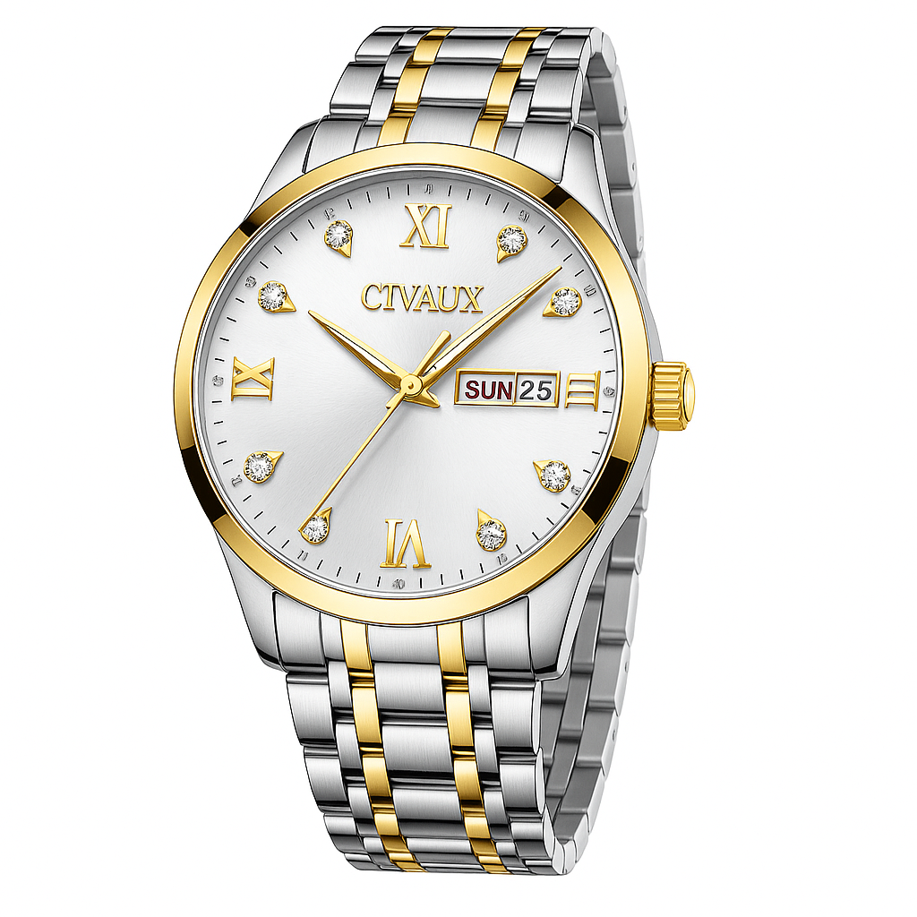 Crafted with opulence in mind, Soleil Impérial fuses polished silver steel with regal gold accents.